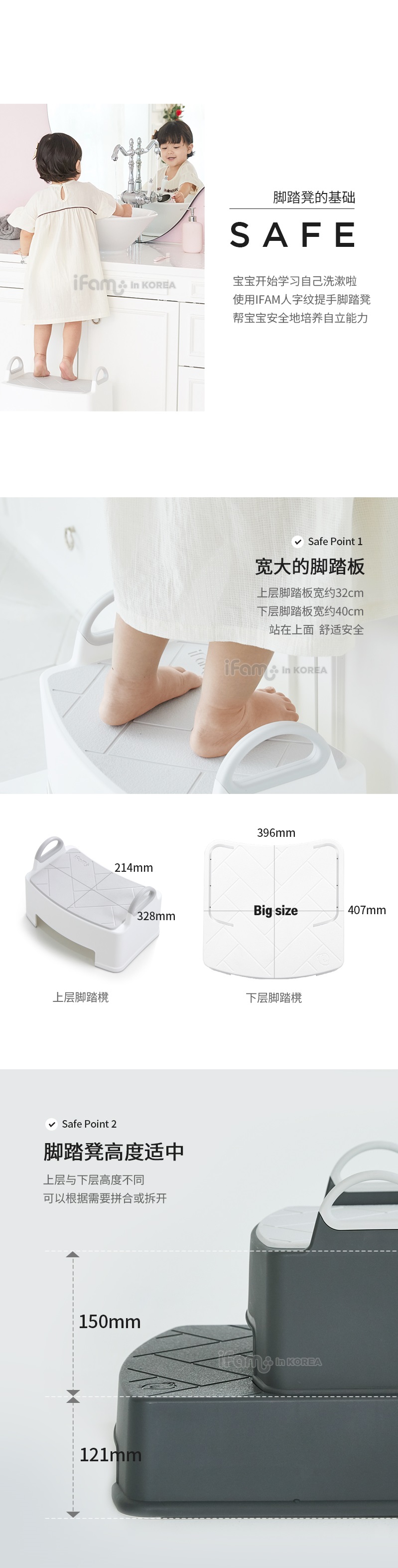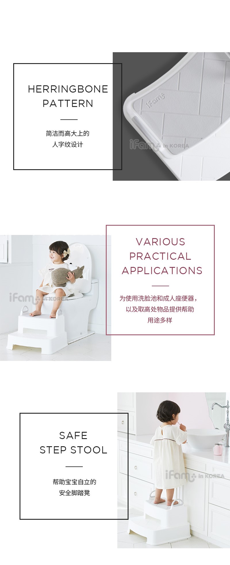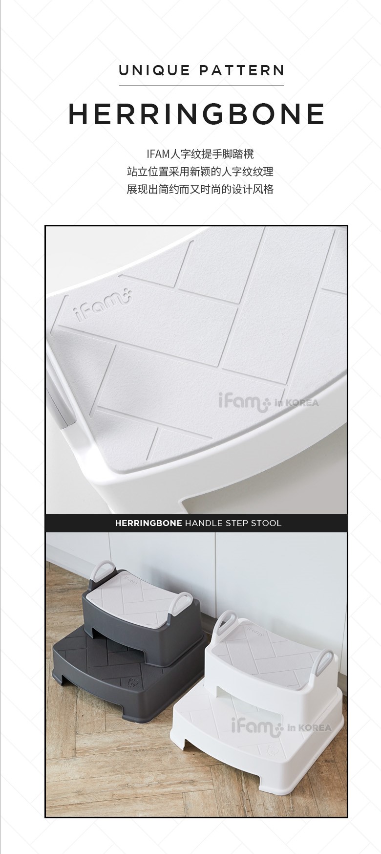 IFAM HERRINGBONE Handle Step Stool Double (WHITE)