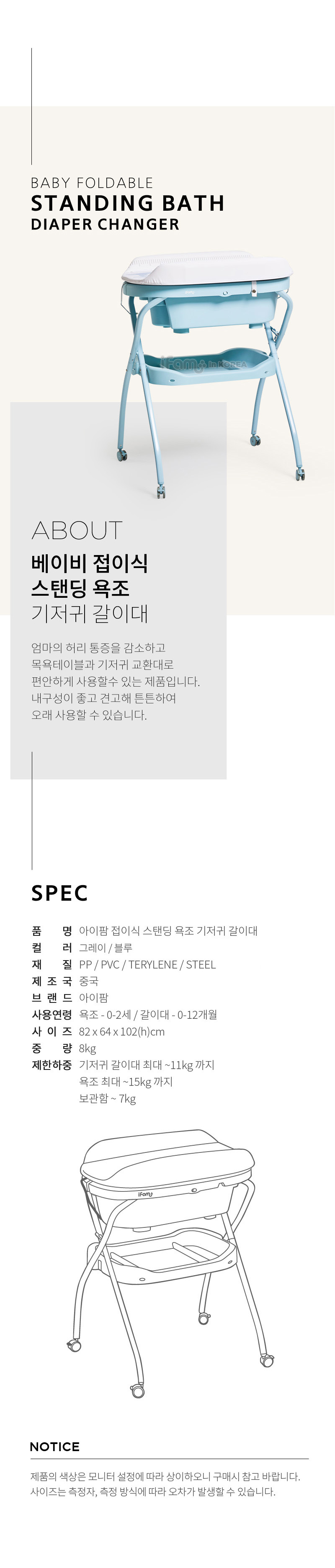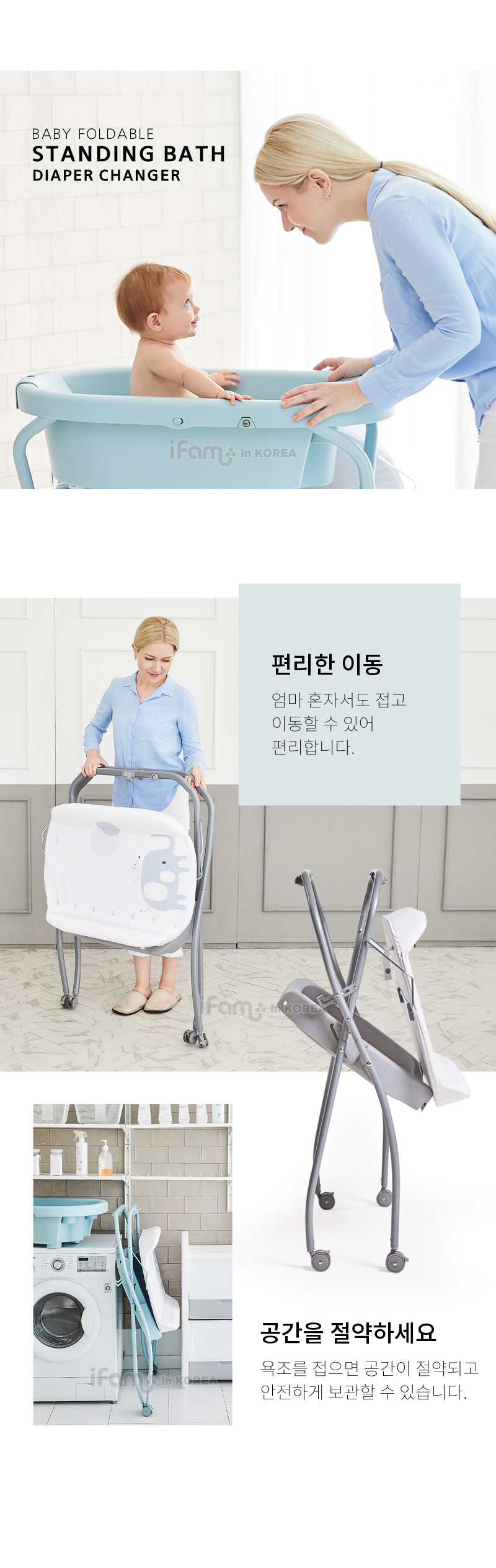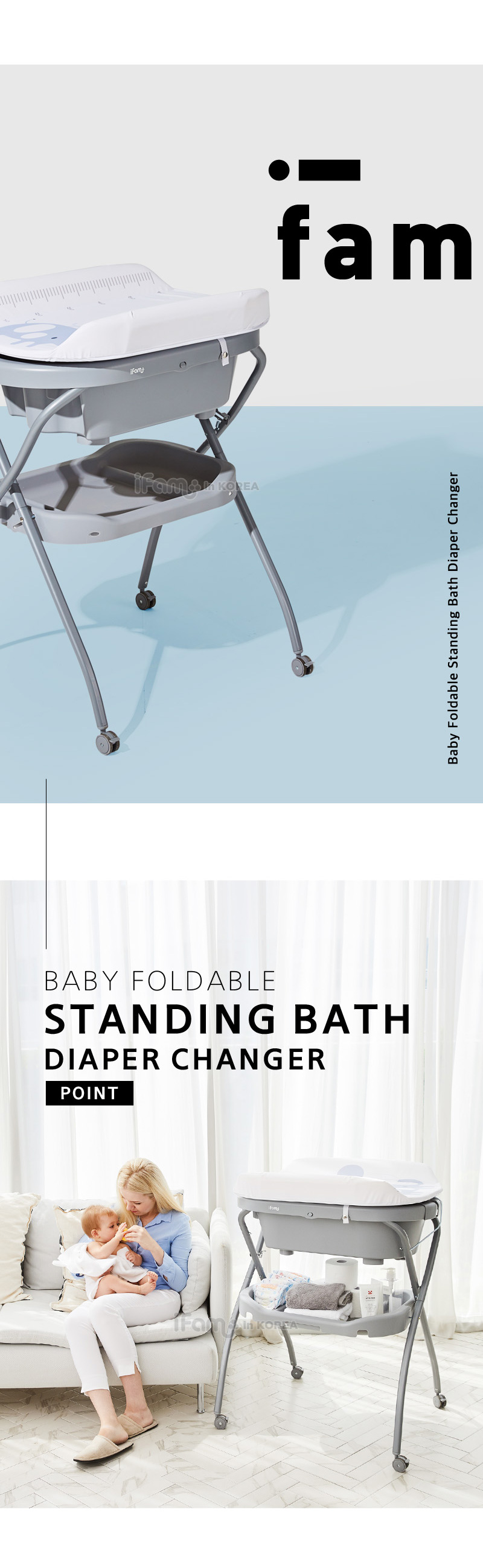 IFAM BABY FOLDABLE STANDING BATH DIAPER CHANGER(MINT)